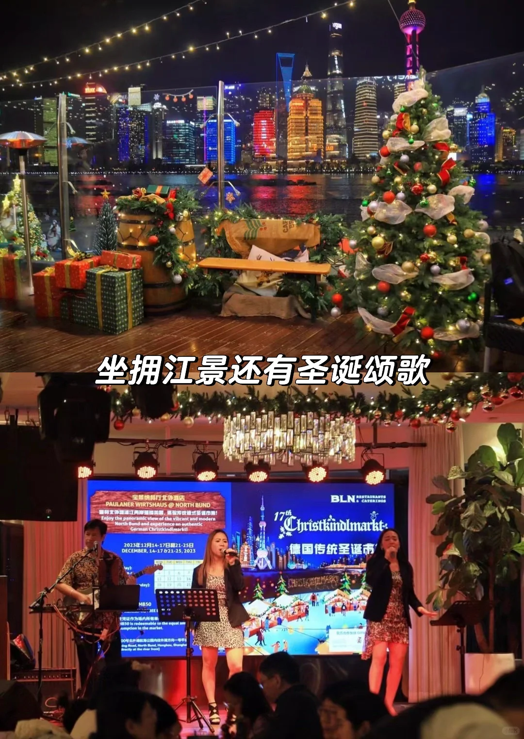 传统德国🇩🇪圣诞集市,坐拥三件套江景。有绝美圣诞树🎄、圣诞木屋🏕️、热红酒🍷、德式烤肠🌭,还有圣诞颂歌表演。门票50可抵扣餐费,人没有特别多体验感最好。强烈推荐。
