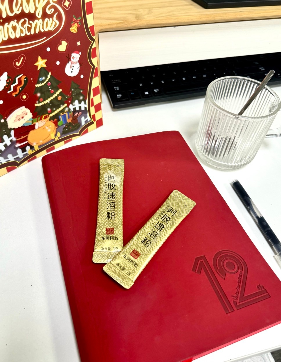 新的一年已经到来!本996打工人的补气血养生指南也该提上日程啦! 新年养生搭子东阿阿胶 说到滋补养生我家中常备的就是 东阿阿胶 小金条,家喻户晓的国民品牌,干净的配料表,只有驴皮、冰糖和黄酒,喝起来放心更安心!!而且都是独立包装,小小一袋直接冲饮就可以喝了,也能自己DIY~加在酸奶里、牛奶中都行,出差带出门啥的也很方便快捷,日常坚持服用,还能提高免疫力,滋补气血!身体机能好了,新年状态也跟着好了!