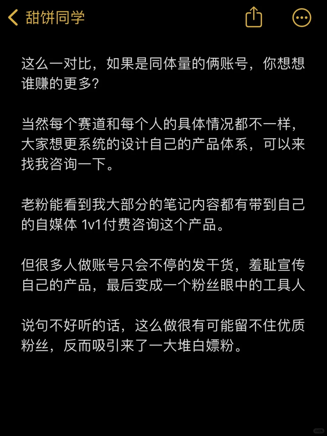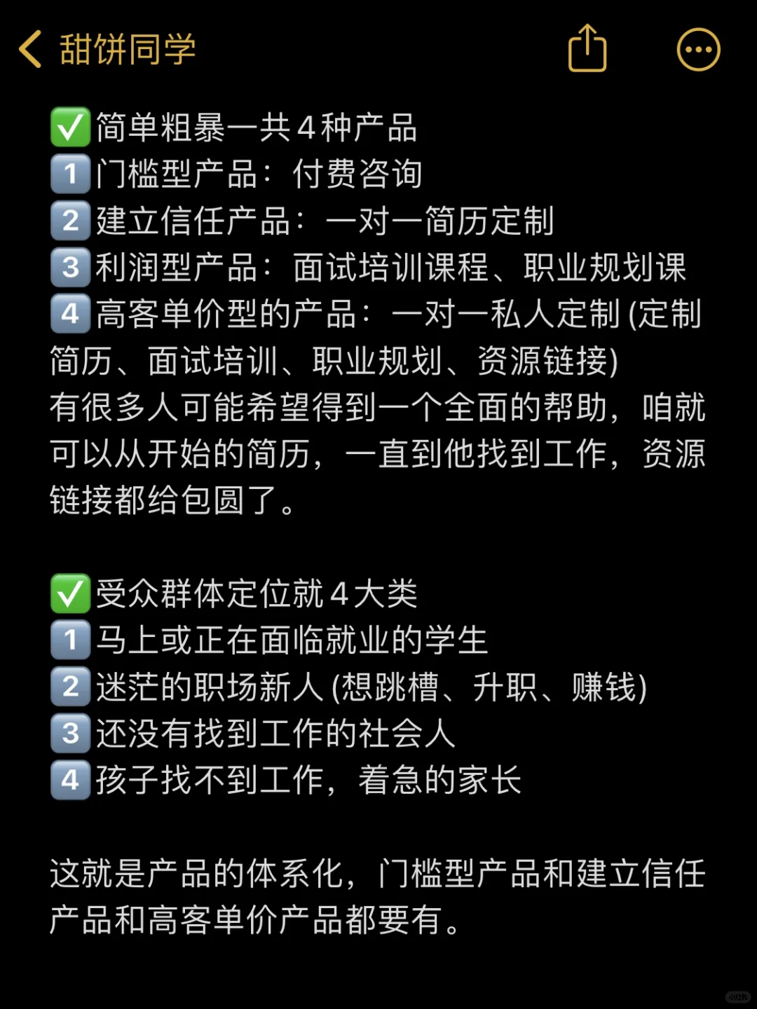 小而美,成长属性Ip,有技能(会设计产品结构+会做高密度价值内容),有项目产品(产品线的架构)
