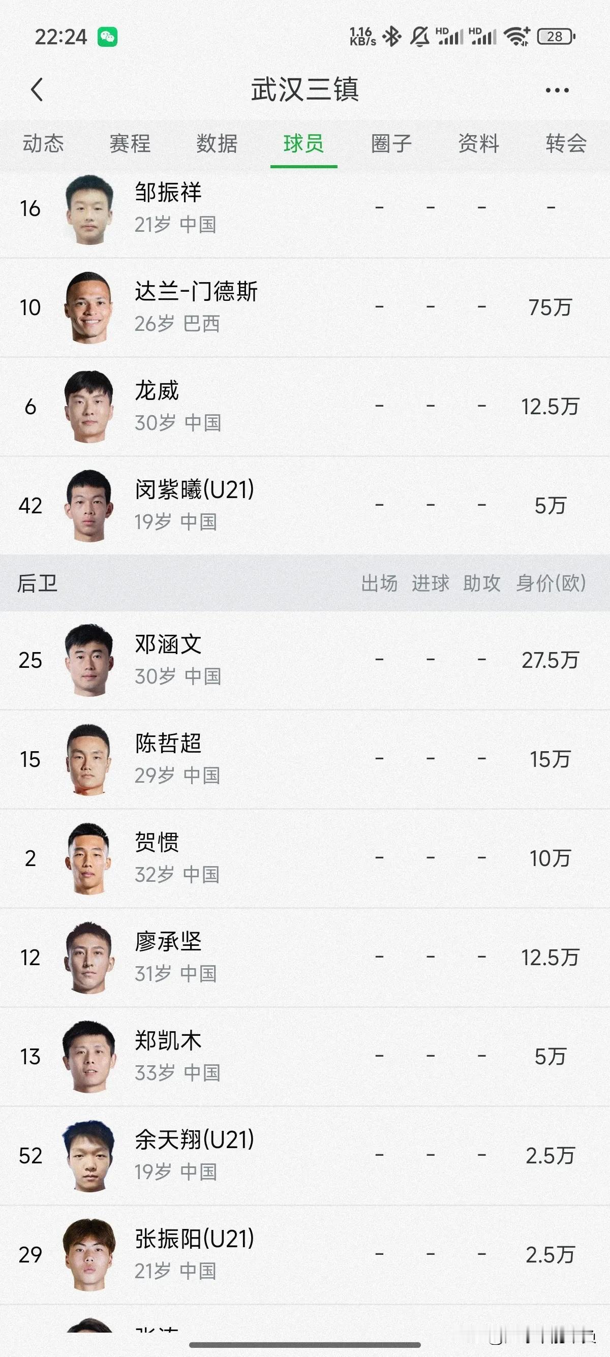 武汉三镇队,25赛季一线队大名单和球衣号码已经出来了,其中多达九名队员是u21球员,平均年龄也是全中超最低,武汉三镇对年轻球员的培养真的做的很好,扎根青训,让小球员有更多的比赛机会,其中谭嘉烨是首次被提拔到一线队,希望能带来惊喜! 达兰已经穿上了10号球衣,新外援图多利毫无疑问穿9号球衣,邵尔穿7号,帕拉西奥斯穿11号,汪晋贤8号,这几个球员估计就是前场的首发球员了,大家觉得球衣号码分配的怎么样呢?武汉三镇