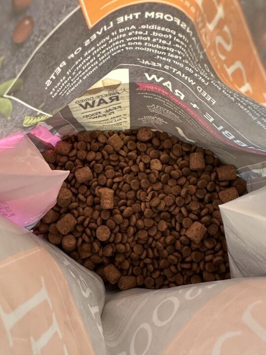 狗子很爱吃的一款冻干狗粮,对!它里面添加了hpp七合一冻干,直接拿捏我家小狗的胃了,他特别喜欢把冻干捏碎了拌在狗粮里面,5分钟就能光碟,适口性绝!营养我觉得算是全方面都考虑到小型犬营养需求的狗粮了,营养很高,配方第一位是鸡肉,主要用的是北美散养的走地鸡,原材料不错,它针对小型犬的需求,还添加了软骨素(呵护髌骨关节)、鱼油(养护小狗毛发)、益生菌(拒绝软便),方方面面都照顾到了小狗的各种需求,给狗狗喂,更省心~