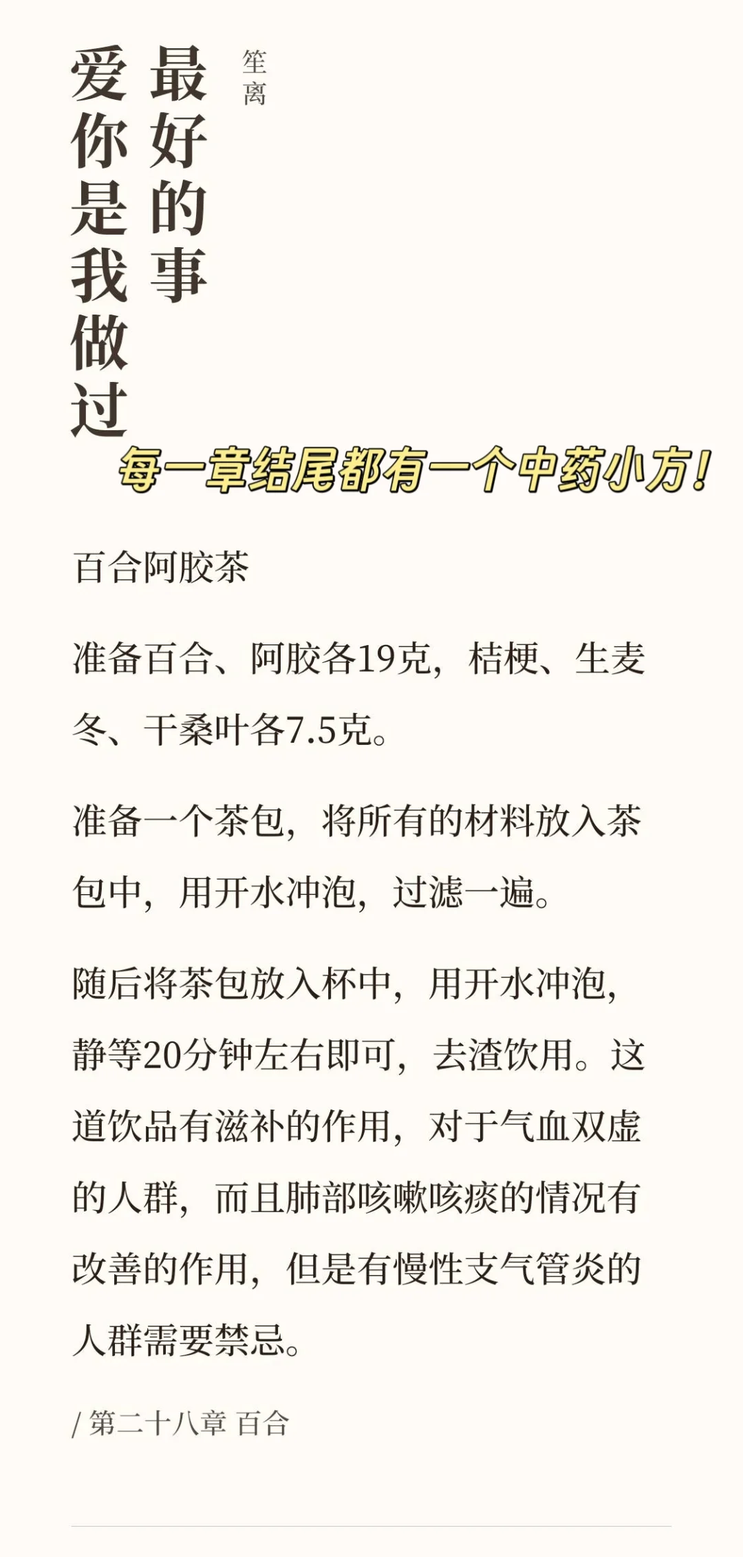 每章的名字都是一味中 药药材