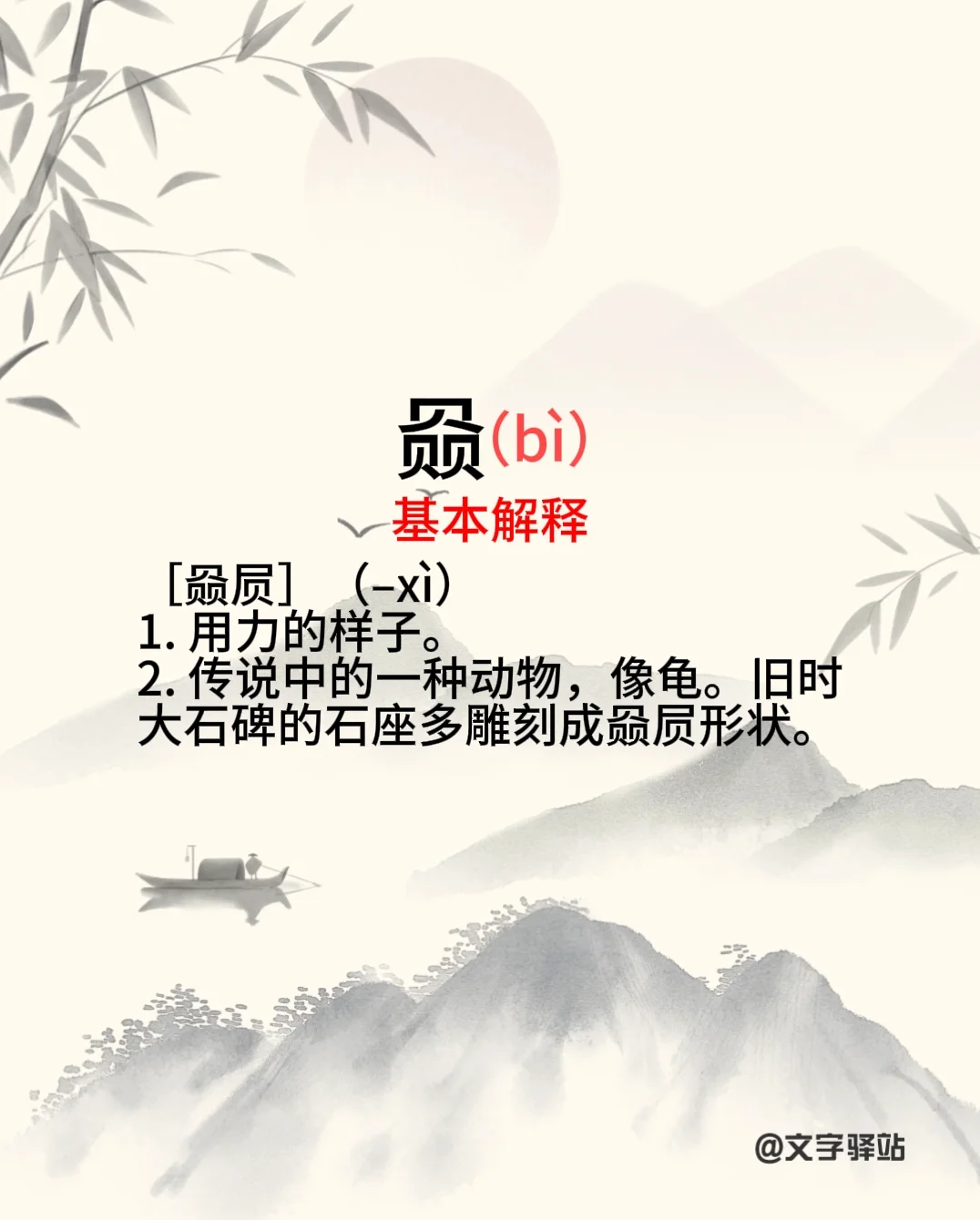 拾起文字 汉字之美 字词积累 生僻字 每天学习一点点 汉字 每日一字 容易读错的字 赑的普通话读音是哪个? [投票] 图片左滑查看正确读音哦