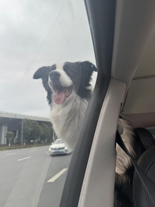 坐车兜风的小狗 看得出他很开心