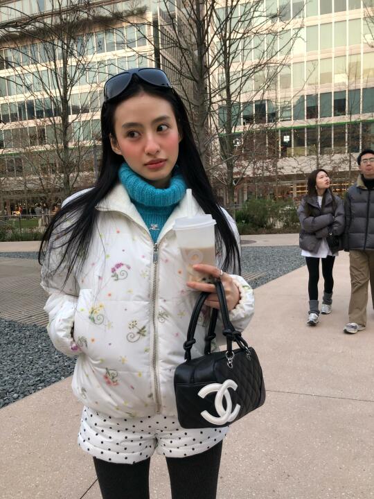 吴艳妮在成都穿着短裤大腿看起来很粗壮,表情自信又张扬