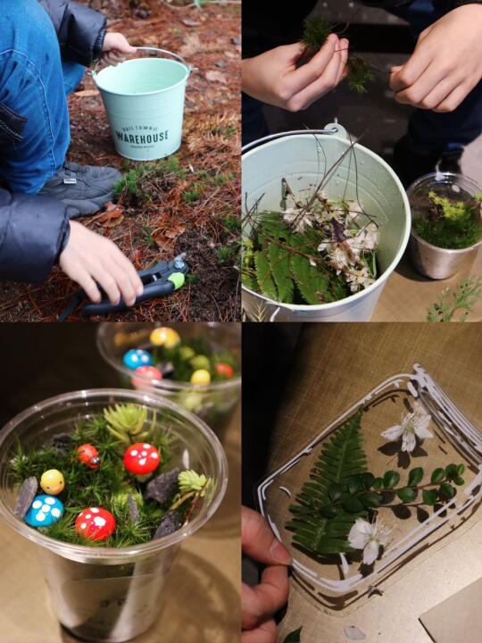 💁♀️不得不夸一下民宿的管家小姐姐,热情又贴心。她带着我们穿梭在山林间,寻找嫩绿的叶子和毛茸茸的苔藓,一起制作树叶🍃书签和苔藓植物盆栽摆件 ,大小朋友一起动手制作,真滴是好玩又有趣🤔