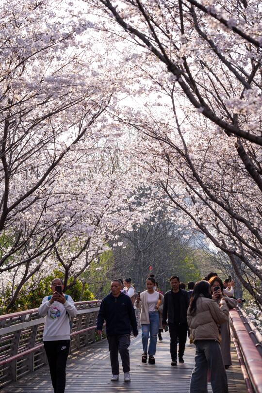 又到一年樱花🌸季,迎着和煦春风和暖阳,樱花公园的樱花百花齐放,地铁站门口的那一棵也盛开啦! 🔥粉如火,❄️白如雪,粉色和白色的樱花交织在一起,谱写出一曲春的序曲,歌颂春天的到来🍃也欢迎着每一位前来赏花的游客 🧚🏻♂️樱花桥是一处非常出片的地点哦,请大家一定要打卡,木质的深褐色地板和红色的栏杆,头顶覆盖着的是一片片的粉白色樱花,交相辉映🎨,宛如一个颜料盘,明媚的阳光洒在桥上,想不出片都难哦😝 花期短暂,美丽的樱花也只能在这世间短暂的留下这一抹朝气蓬勃的颜色,可不要错付了这场春的盛宴