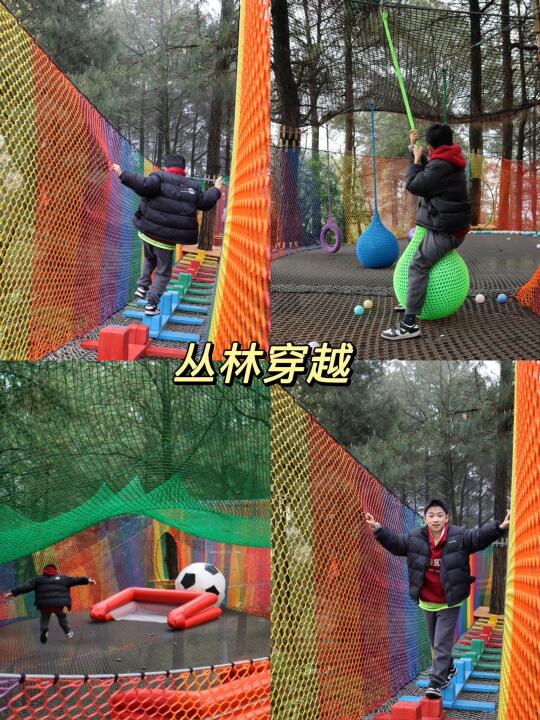 ✅丛林穿越,小盆友小心翼翼又勇敢地穿梭在林间,锻炼了体能和协调性,自信心也大大提gao!