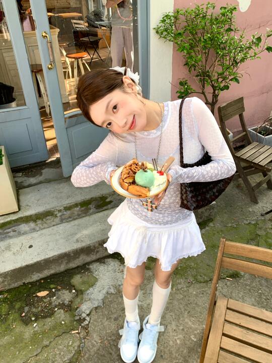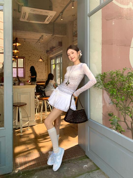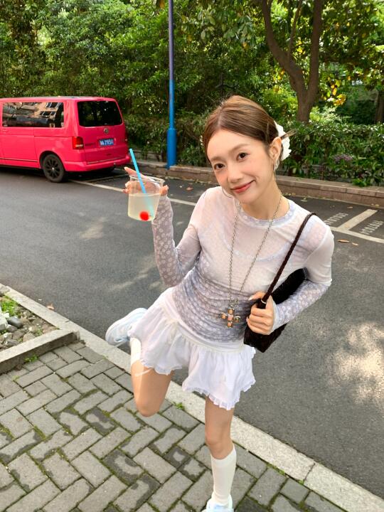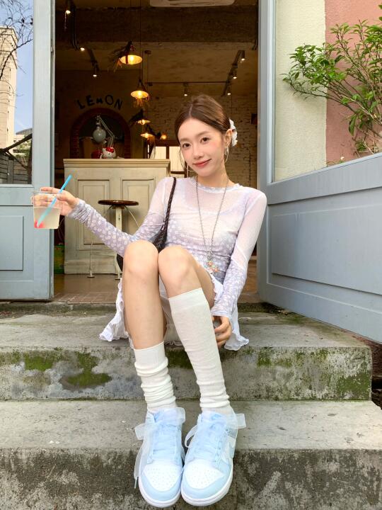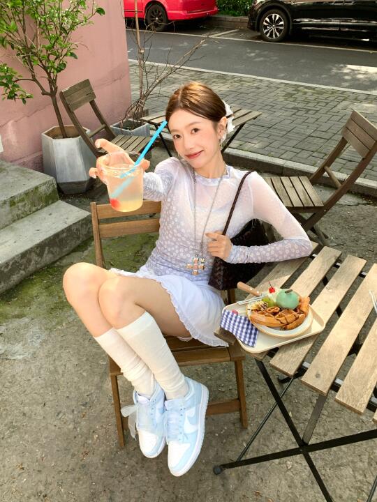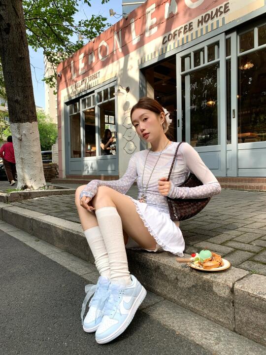 最近天气好好 出门去吃冰激凌啦~ 顺便给自己搭了一套芭蕾风穿搭 今天穿了双海盐蓝的nike dunk 薰衣草紫与蓝色的碰撞好有趣 自带的薄纱鞋带精致感拉满 已经开始狠狠期待夏天咯!