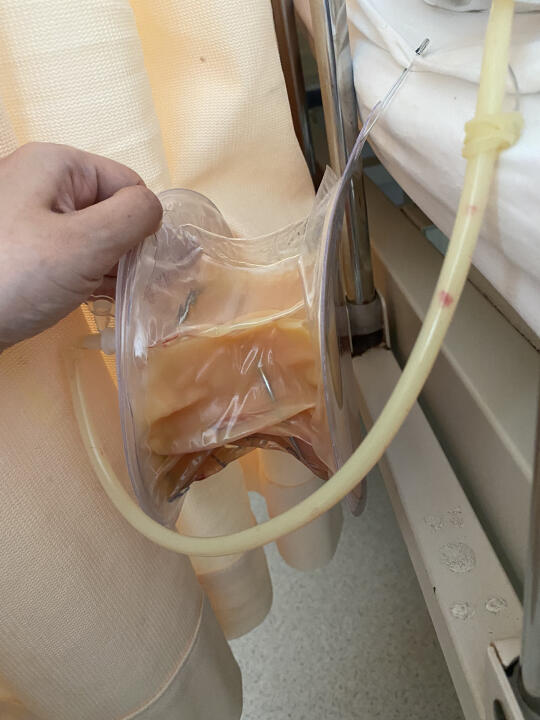 今天早上榨了个苹果汁 中午看引流管的颜色更白了 护士说蛋白粉也不要吃了就吃米汤和果汁