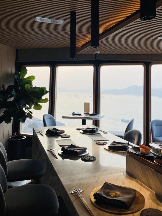 这次来打卡一家以割烹料理为主的Omakase🍣 270度全落地窗可以俯瞰维港海景 建议日落时分过来 可以一边赏夕阳一边享受美食 吃到晚上还可以看维港夜景 氛围感超级棒! - 🍣和缘