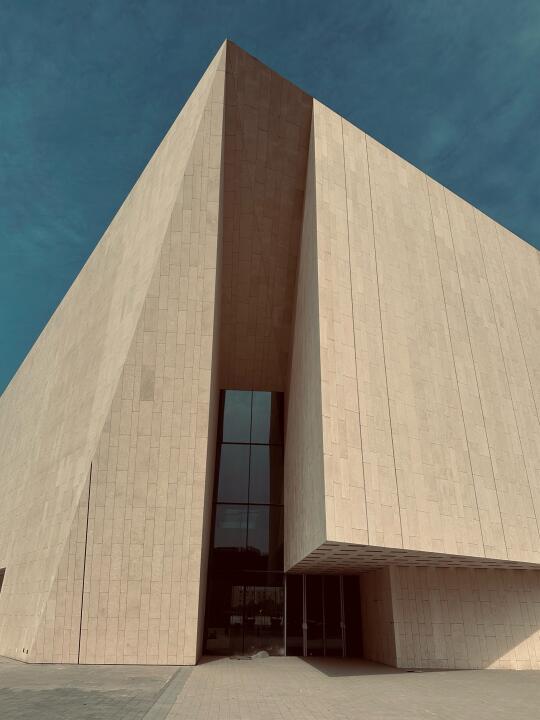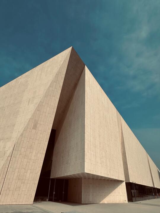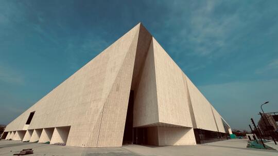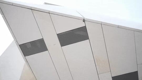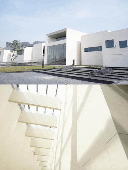 外立面全景:白色石材幕墙+山形轮廓,高级感拉满。