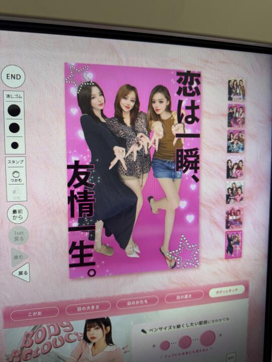 去带姐妹拍了超级本土的大头贴[飞吻R] 这个日式大眼小头真的是没谁了哈哈哈哈 笑的想🐭 位置:opa F5(心斋桥大丸百货对面的商场)