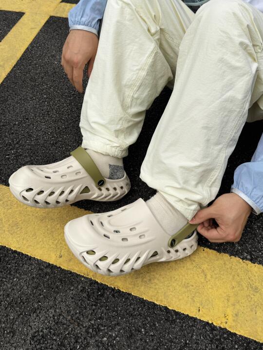 穿搭需要凉爽的季节又到了! 高温完全不想闷着出门 鞋子肯定选洞洞鞋 尊重一下30°咯!踩屎和透气感真的很舒适 很适合夏天出行🚶🏻 下雨也不用怕鞋子湿掉 也是被朋友种草到了 ❗ 整个鞋款蛮匹配我的工装衣柜的 🫵🏻 重点当然还是增高4.5cm 懂得都懂哈哈[看R]