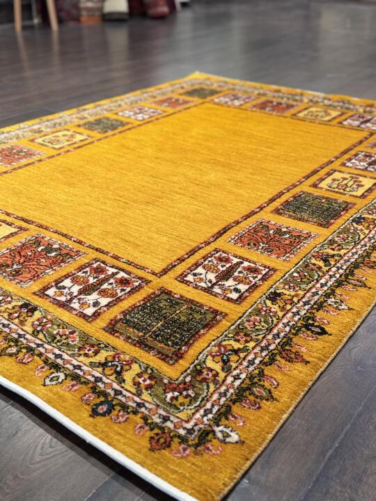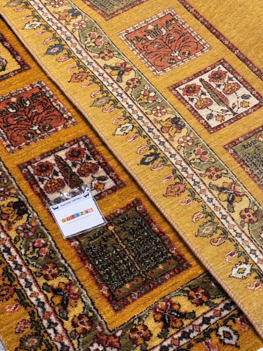 这款地毯大面积的暖黄色调,则彰显现代简约风格,鲜明的色彩对比,让整体视觉效果既和谐又富有层次感,适用于多种家居风格空间。