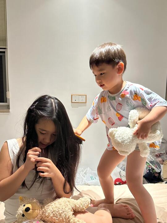 太热了,还是在家玩孩子吧!墨汐当奶爸🐣