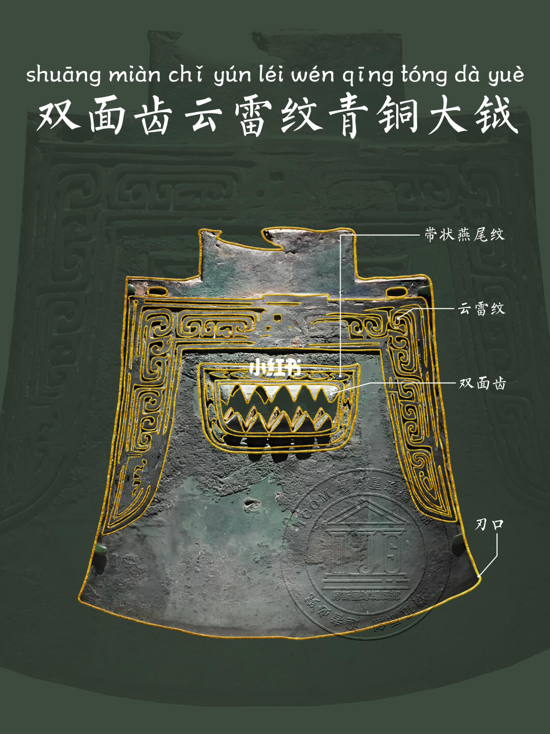 🖋️三千年前,它曾紧握在一位王者手中,是战场上的威严,更是权力的象征——这就是江西新干出土的‘双面齿云雷纹青铜大钺’。