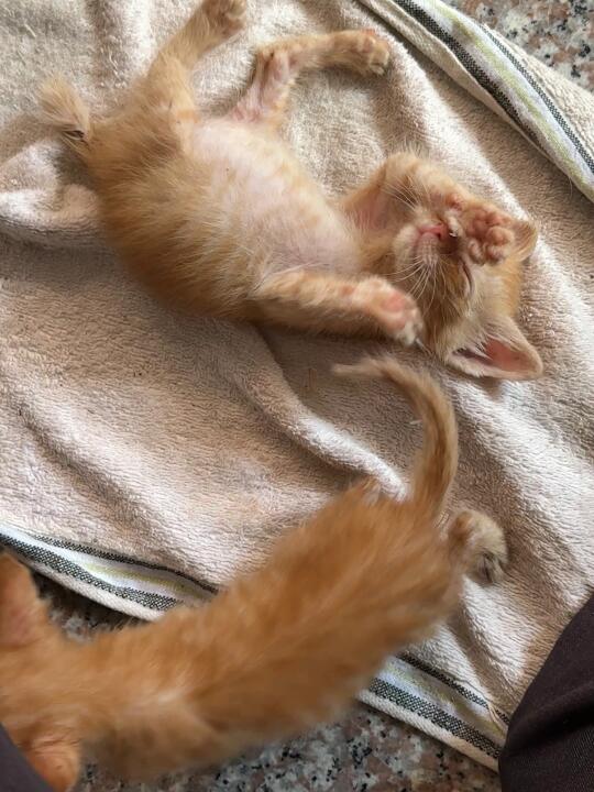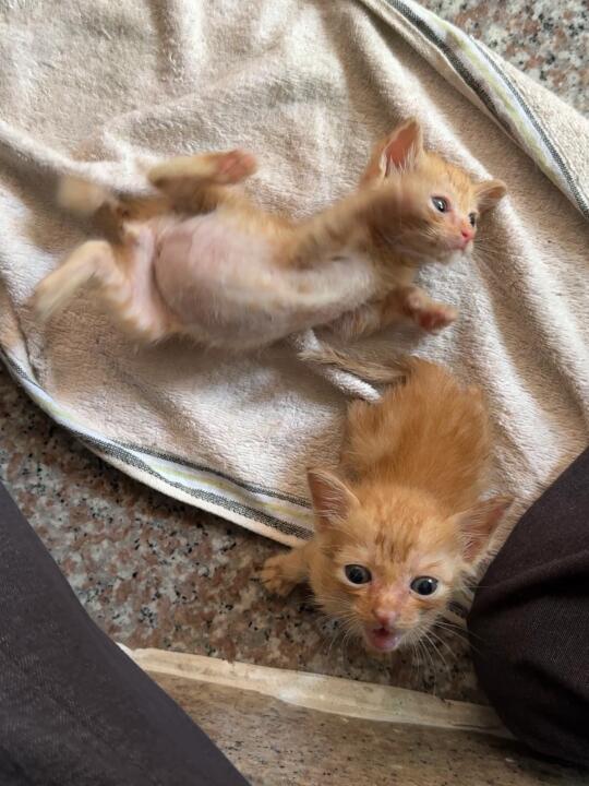 好消息: 马路上差点就被电动车压过去的猫被我捡了 时间是在上周二 莫名其妙就捡了两只在马路上乱跑的小橘 长出一点点牙了 没养过猫也不知道多大了 目前就是吃奶糕粮(不懂得 喂多了 在控制了 但本人没有养猫的想法 打算再大一些就找领养 有人有意向吗 坐标泉州/晋江