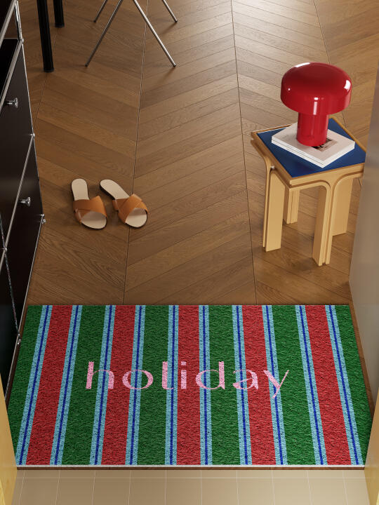 一推门就穿越到马尔代夫 中古多巴胺条纹地垫美到窒息💙 像是把海岸线搬进玄关啦! 阳光/沙滩/海浪的治愈配色 每天回家都有种“度假”的仪式感~ -