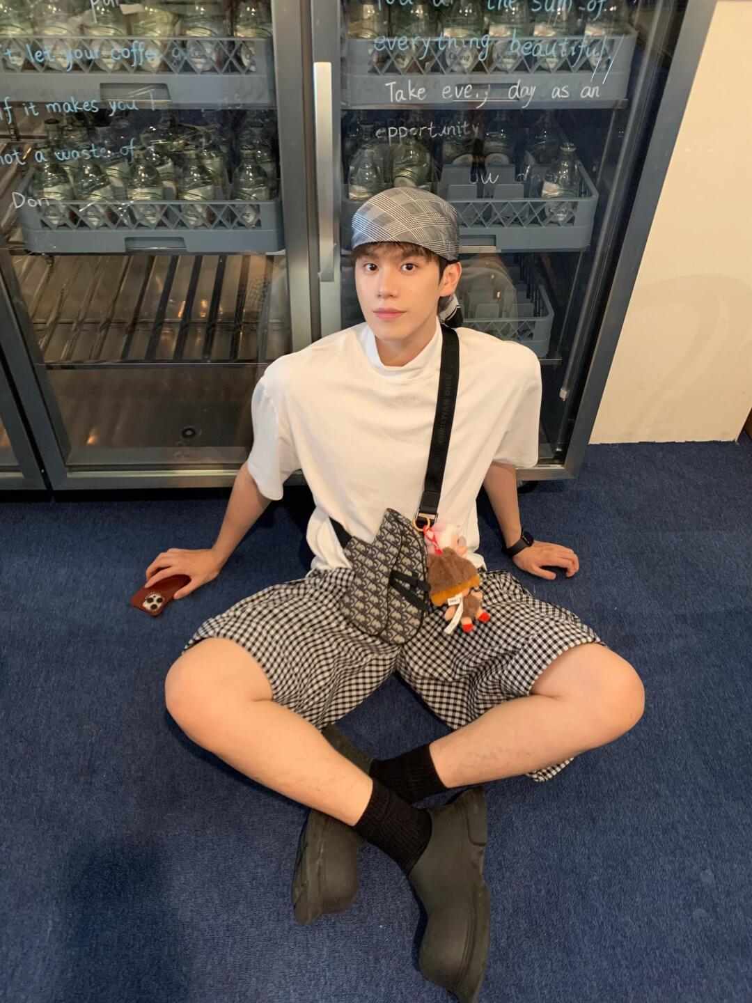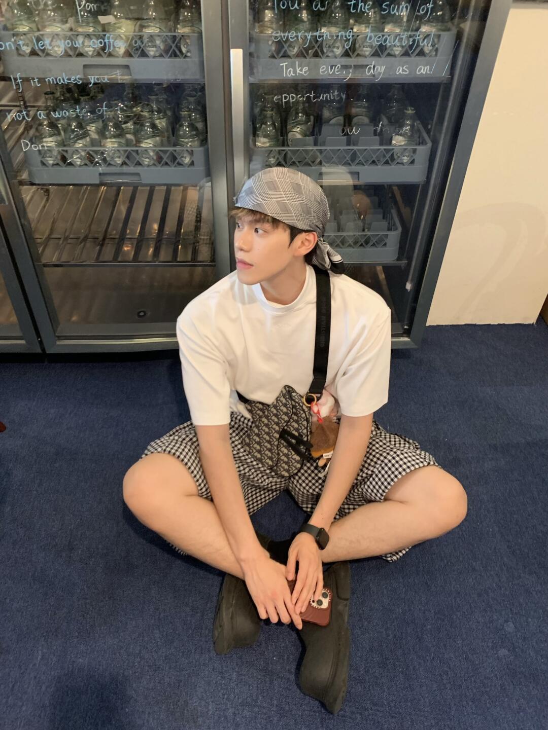 谁懂和小狗贴贴的快乐💕 白T+棋盘格短裤+大头鞋 简单又出挑 挎个小包 随性中带点酷劲儿 喜欢这种日常又松弛的穿搭