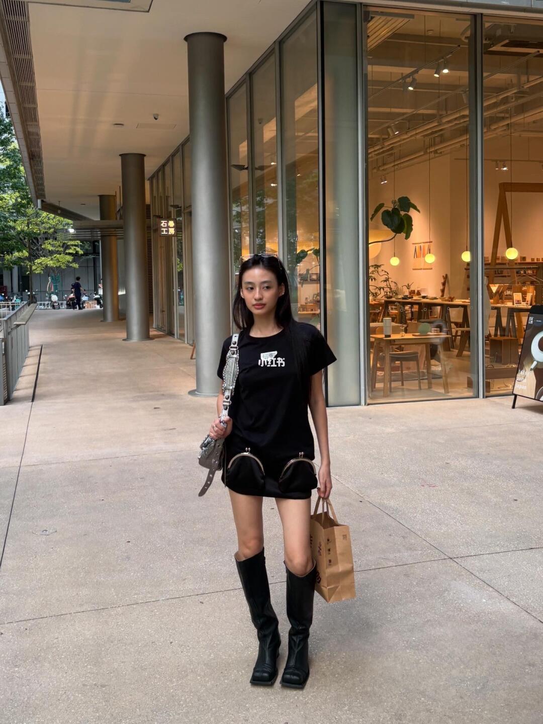 吴艳妮在成都穿着短裤大腿看起来很粗壮,表情自信又张扬