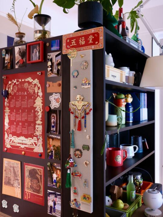 今年去三星堆买的黄金面具徽章,配上故宫的霞帔云肩冰箱贴,完美。