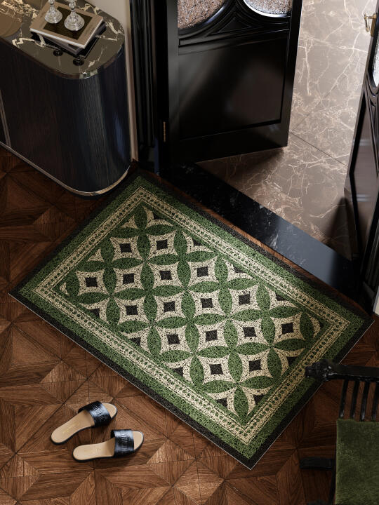 复古绿小花砖入户地垫 中古风家居氛围感单品 低饱和度绿调花砖纹样 搭配铜钱纹肌理细节 适合与现代/复古风格混搭 橡胶底防滑层设计 日常除尘可用吸尘器打理 避免硬物刮擦保持表面质感 花砖元素延续了南洋建筑脉络 为入户区增添叙事感 低调又复古 -