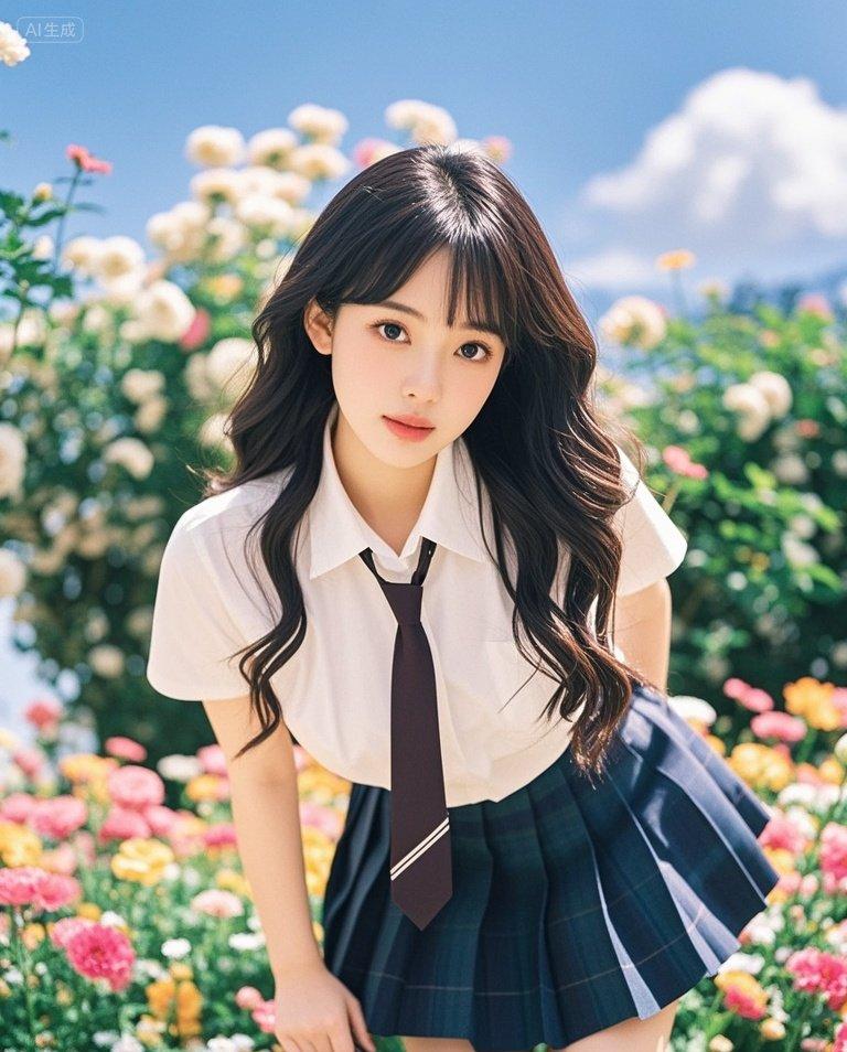 她在花海中的姿态,透露出一种难以言喻的魅力