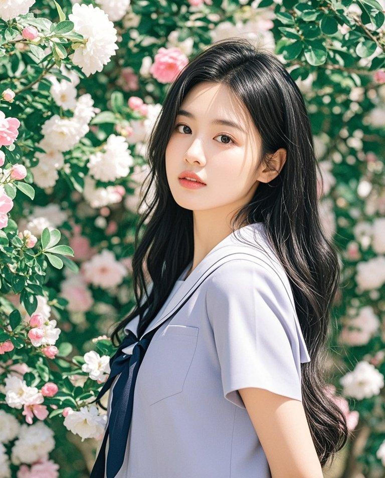 她在花海中的姿态,透露出一种难以言喻的魅力