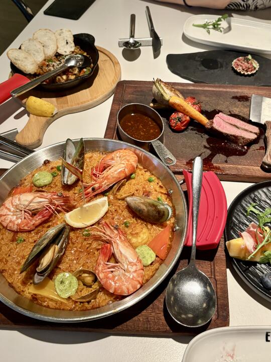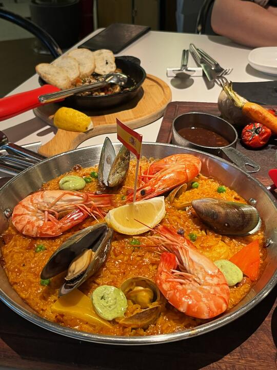 【传统瓦伦西亚海鲜饭】🥘是这次吃到最好吃的一道菜!米饭特别香,混合着海鲜的鲜味,搭配柠檬和芥末入口,根本停不下来一直想吃!!