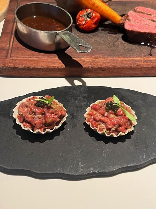 【m5和牛塔塔】第一次尝试生牛肉的组合,入口微酸,和牛油脂香丰富,搭配起来竟然一点也不腻~