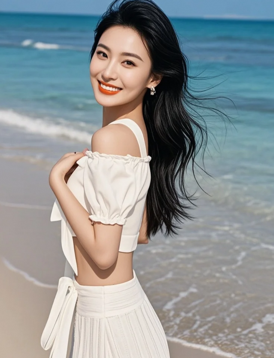 白裙出镜,她在海边拍出电影感大片