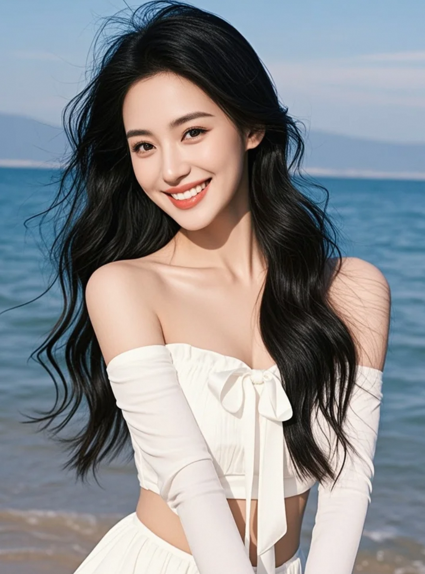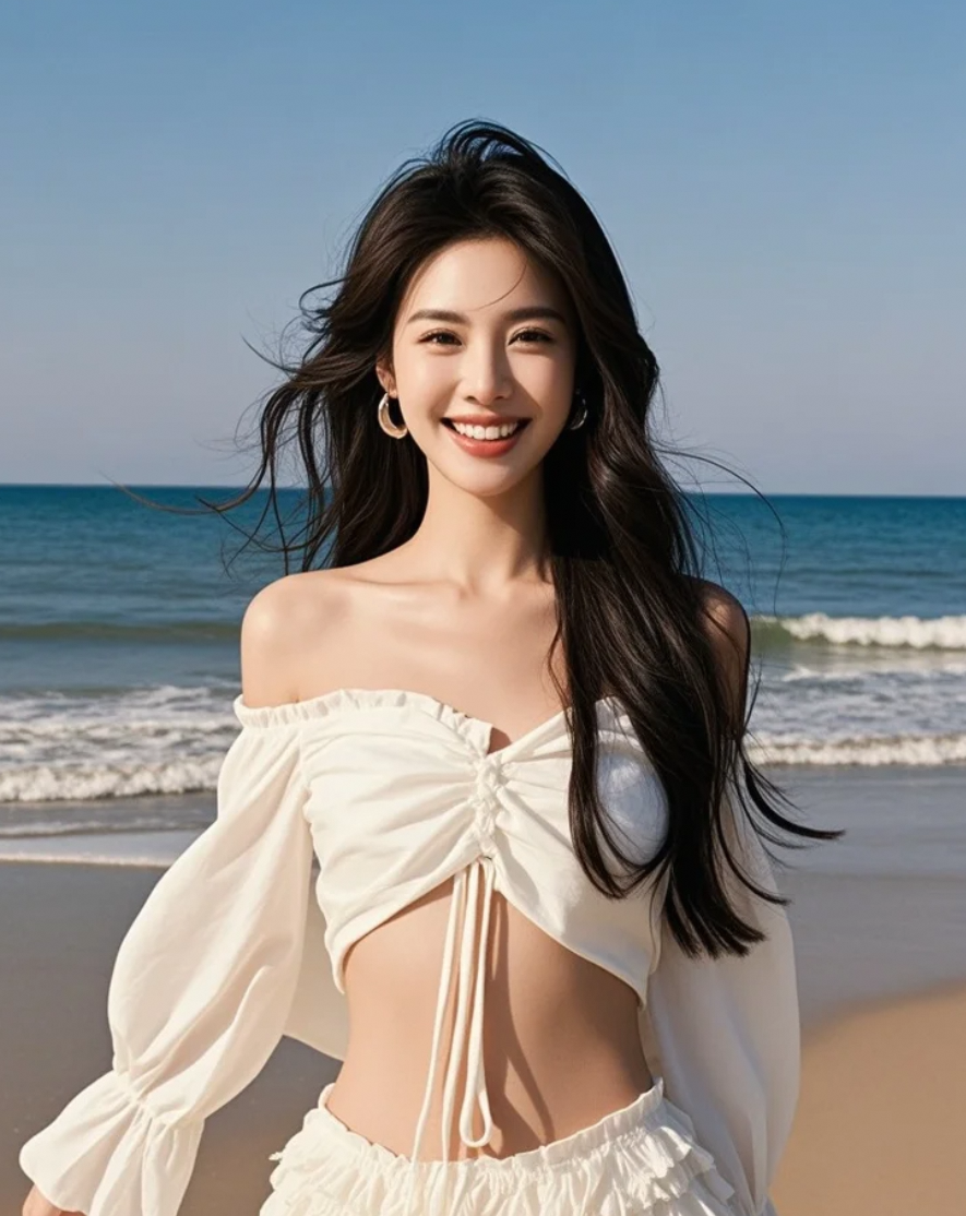 白裙女子在海边,是对生活最美的回应
