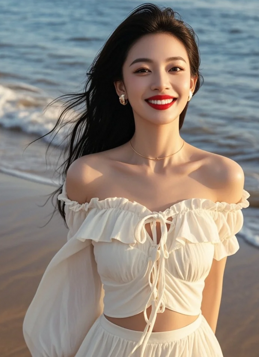 白裙女子在海边,拍出夏日高光时刻