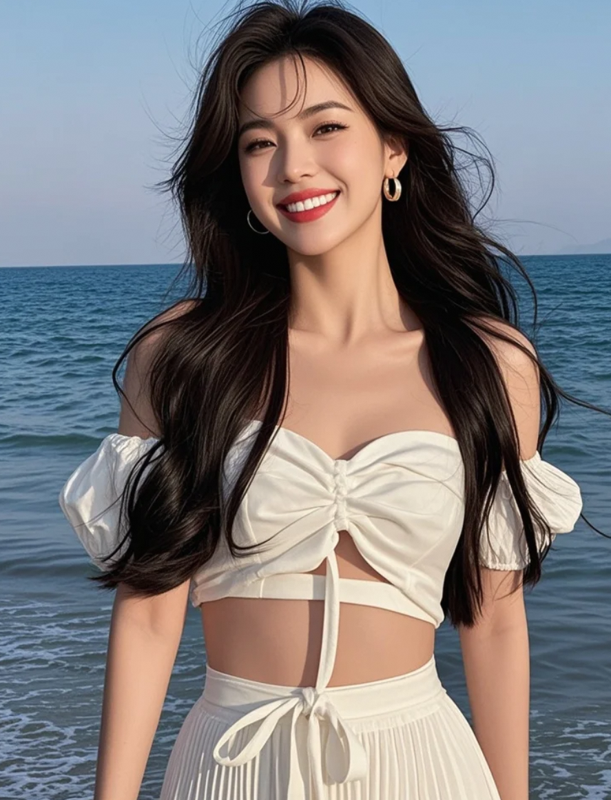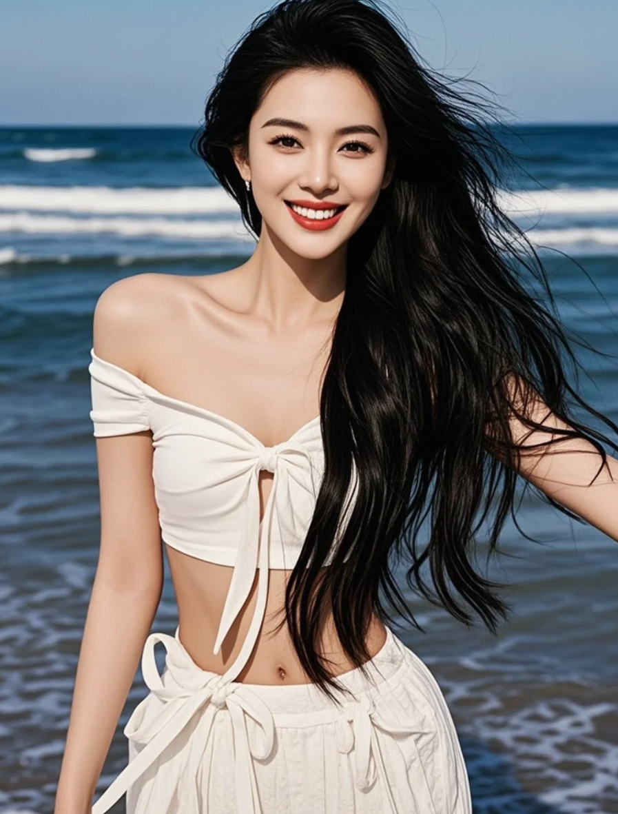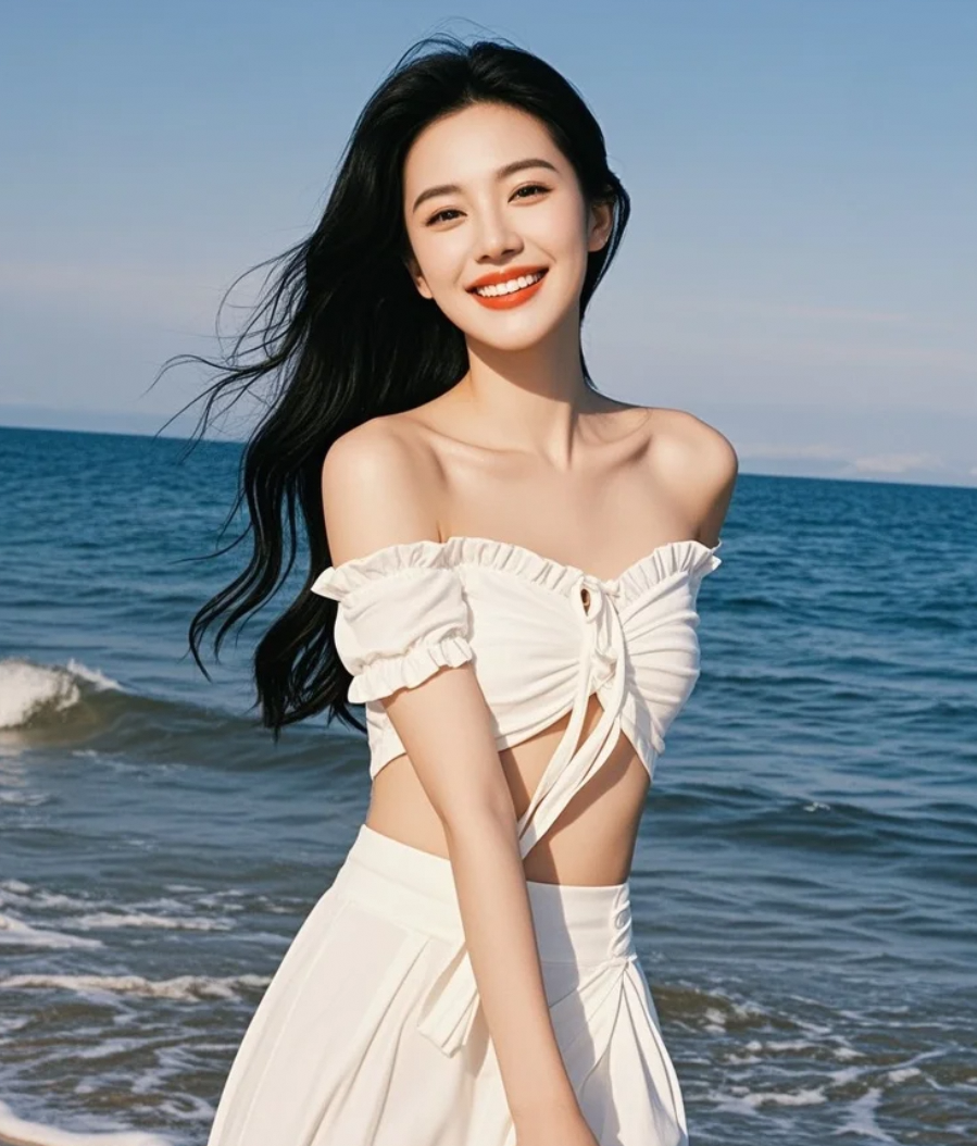 她穿着白裙在海边,拍出最IN穿搭