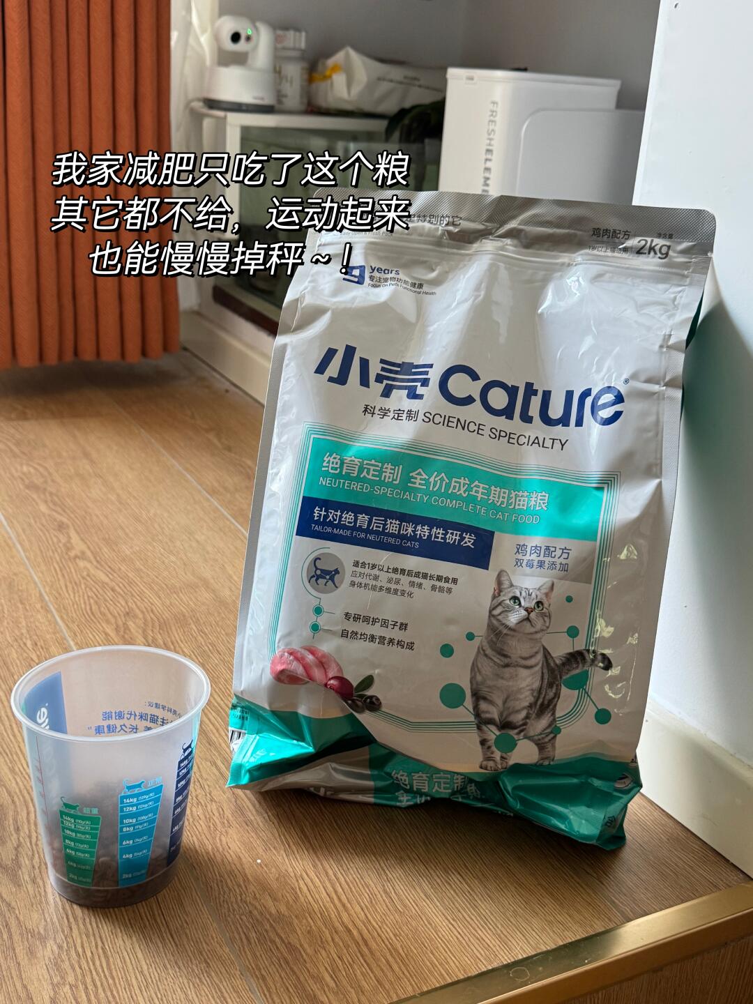 开始尝试各种减肥粮,最后决定囤小壳绝育粮!适口性真的好,我闻着都想来一口,