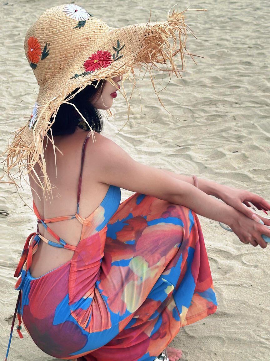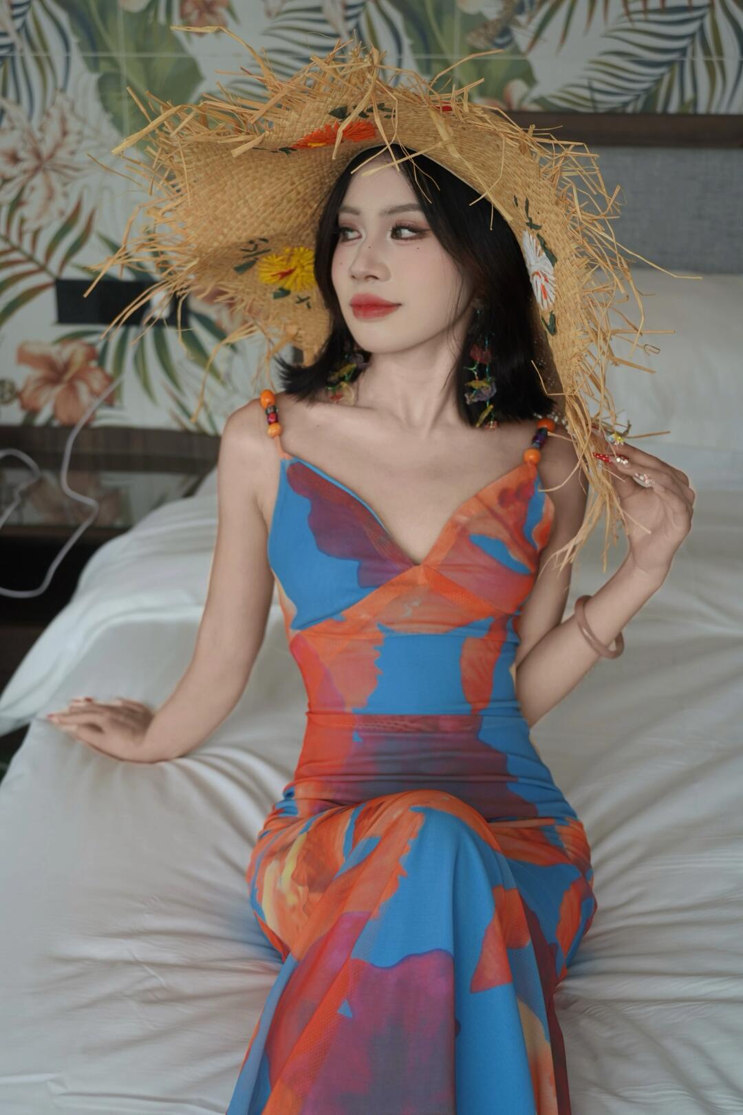 黄油碎花裙,把气质穿在身上。黄油底撞色黑蓝碎花,自带复古滤镜,吊带裙型勾勒出