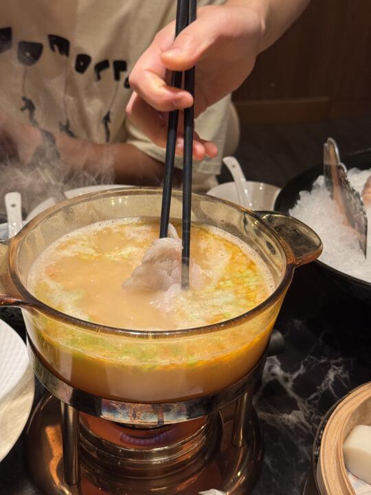 很鲜美,鱼味道很好,但是最好涮一下就出锅,直接放在煮里面肉会碎,汤里会放炒米和芹菜碎,挺香的