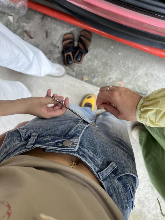 打脐钉的小麦色孕妇