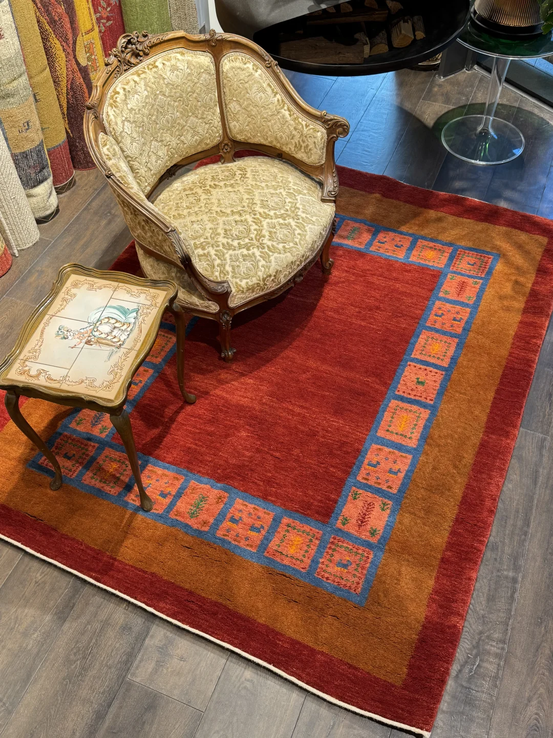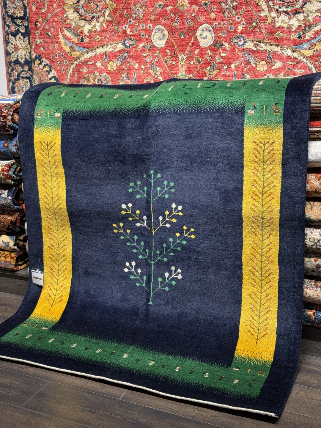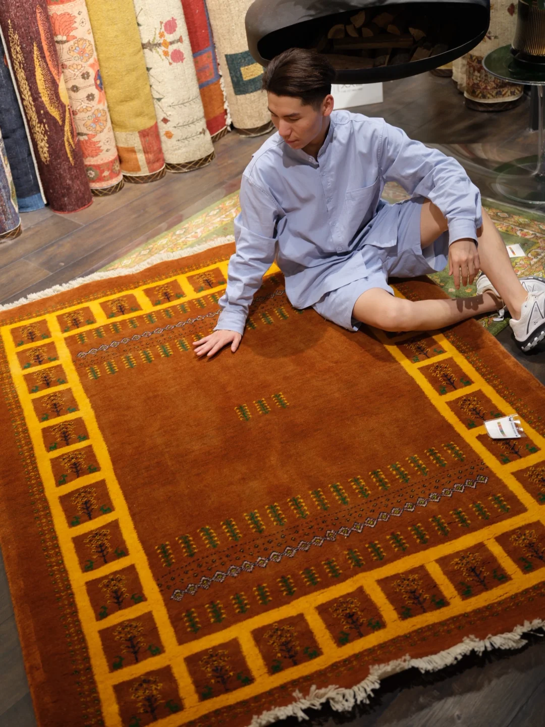 🪬Gülizar 手工羊毛地毯🔥🥳🥳 材质:100% 羊毛 产地:伊朗 ⬇️⬇️150x200cm左右尺寸现代Gabbeh地毯 设计去繁就简,通常是带有骆驼、马匹、人物形象的田野风光,又或者是五颜六色的带状图案,这些属于抽象的棋盘格设计。