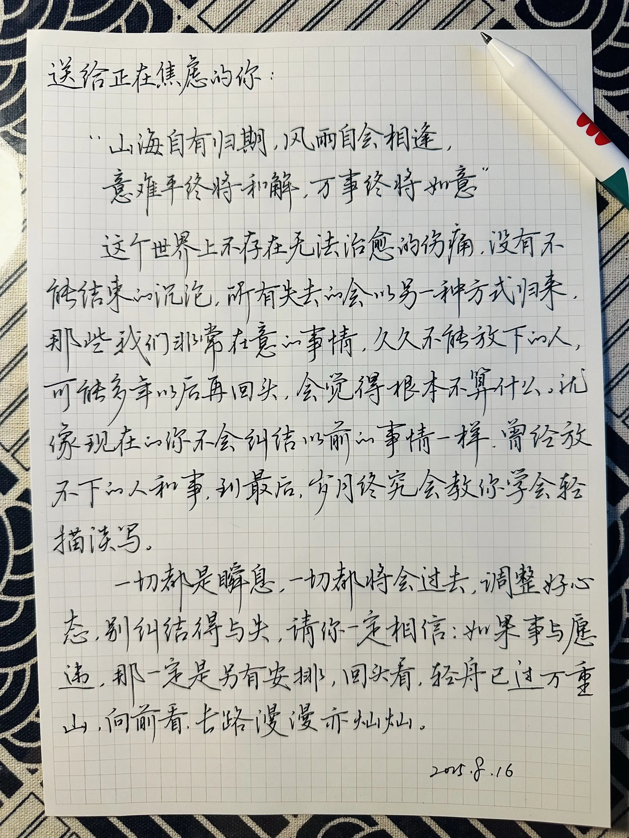 “山海自有归期,风雨自会相逢”