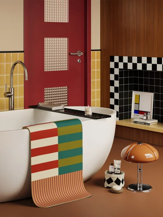 柯布西耶中古风浴室地垫 极简的线条轮廓 搭配中古色彩碰撞 柔和与浓郁交织 低调却层次分明 铺上瞬间改变整个浴室的氛围 -