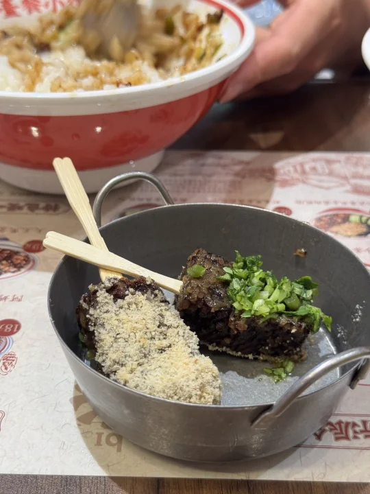 南湖天地负一的一家台湾美食新店 女儿吃卤肉饭吃的挺香的,有hd价格还可以,但是卤肉油肉占的太多了 肉松鸡排饭真的很大一份啊,我一个人完全吃不完的程度,味道可以的这个 猪血糕第一次我是吃不太来的,很明显的猪血味还挺重的 那个脆皮蚵仔煎因为不小心地板先吃了,服务员挺好的给我们重新上了一份并且给我们说了抱歉,地也及时拖干净了 整体比较中规中矩,比较推荐鸡排饭这种