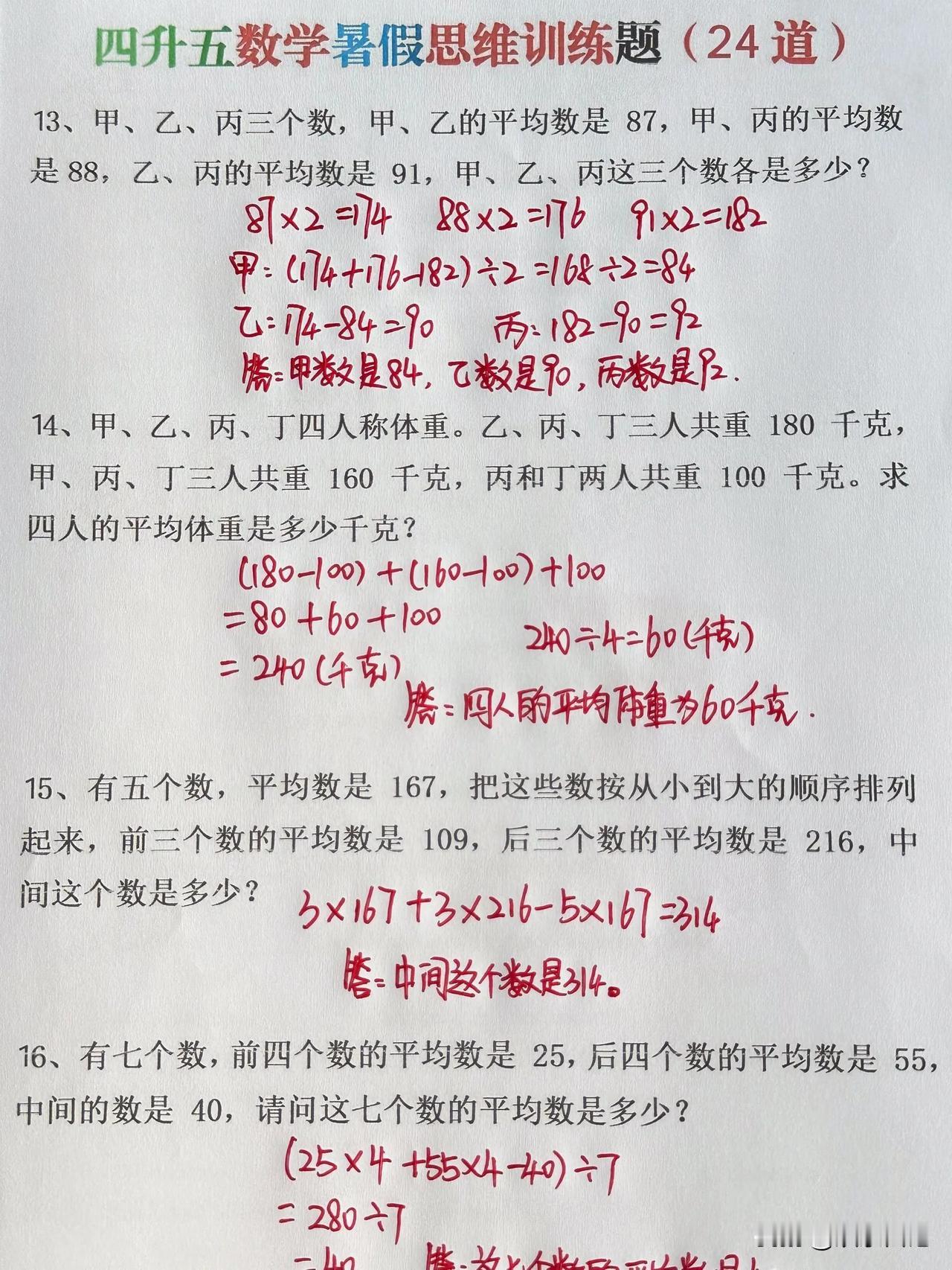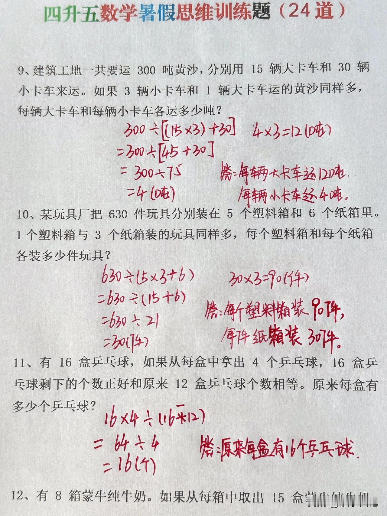 四升五数学思维题来啦! 吃透这些题目,数学妥妥的涨分。 都说四年级是个“坎”,五年级是个“坡”,六年级是个“峰”。坎没走好的,坡快来了,那就赶紧动起来,做做思维题,弯道超车,兴许孩子就开窍啦。分享小学数学题 数学妙题分享 小学知识图解
