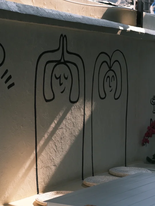 环境还是很不错的,店内的面积也很大,并且有个院子 分无烟区和抽烟区,去之前还以为日咖夜酒没那么多人抽烟,结果白天还是有很多人抽烟 进门是无烟区但是时不时有人抽着烟进进出出 还有一些人不知道的会坐到无烟区,店家还是会及时提醒的这点挺好的 - 小院子的墙都挺不错的,很好出片的 但是这个天太晒了,拍好赶紧溜到室内 里面有很大的hellokitty墙面…好适合美女们打卡 - 喝的开心果中规中矩,特调看着挺不错的但是因为刚出院喝不了咖啡也吃不了蛋糕无法做出评价