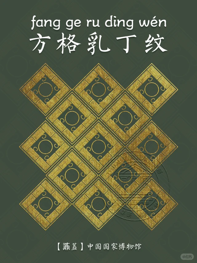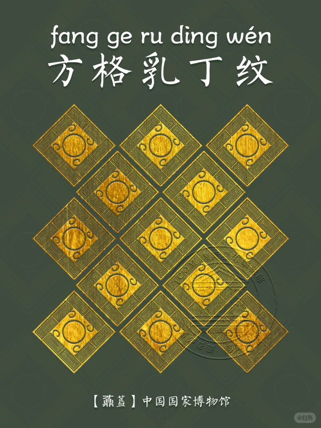 🖋️方格乳丁纹:又称斜方格乳钉纹、乳钉雷纹或百乳雷纹