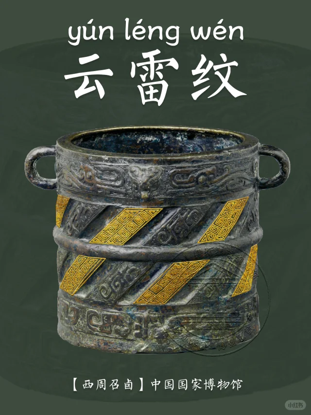 📍 起源:一般认为云雷纹起源于新石器时代,可能由自然现象如云和雷的形态演变而来,也可能是对蛇的形象的抽象化和图案化。
