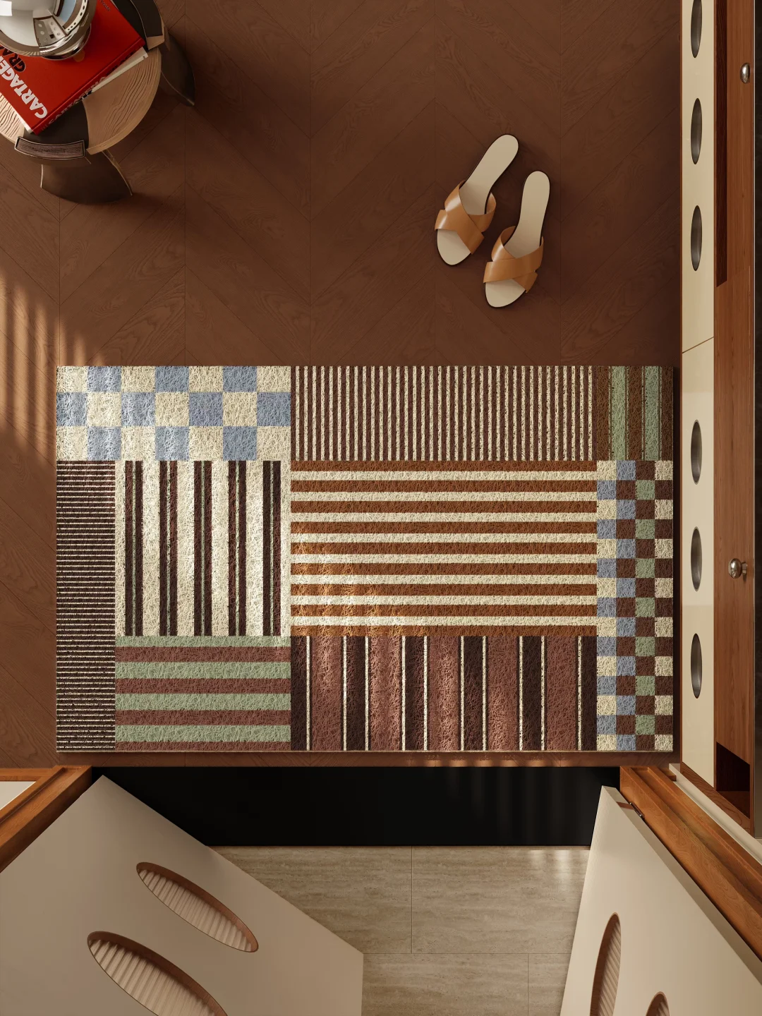 秋日玄关布置|几何拼接与焦糖色系碰撞!