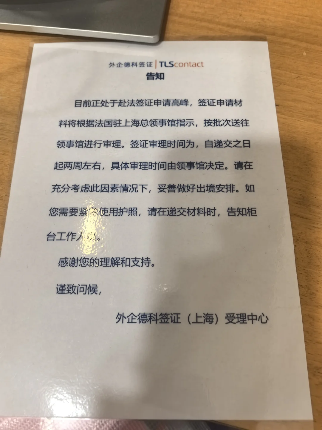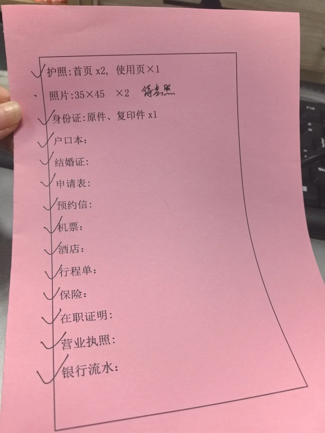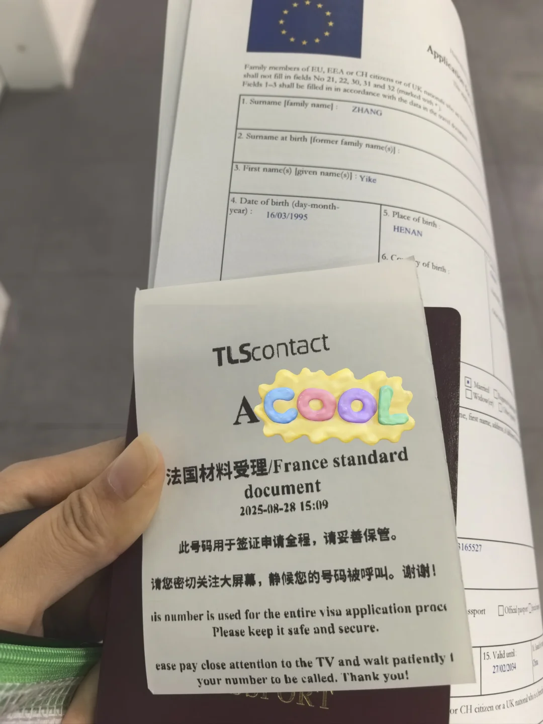 整个申请过程中,我犯了两个非常重要的错误。 1.我以为要把行程单、酒店预订单全要准备好才能去抢号。No!一定要先抢号!也就是大家通常说的slot。这就导致虽然我已经6月份就买好了机票,但是我7月6号那天才填写了申请码,所以当时只约到了8月28日下午3:30的优选号。其实最开始是27号下午3:30的优选号,当时在犹豫能不能刷到更早的日期。刷了两天之后,27号的也没有了,于是赶紧下手选了28号的。(我是9月20号就出发了,时间还是挺紧张的)。 2.网上好像没人提,所以大意了。那就是委托他人领取护照的表格下载错了。因为是老公委托我去代领,我当时是直接在上搜到了网址下载了表格,现场拿出来之后,工作人员说这是荷兰的不是法国的。当时工作人员说这就算是需要补材料了,把我老公的材料单独做了标记。需要补材料的大家注意一下!最好自己带电脑。现场虽然有电脑,但是是局域网,无法连接打印机,也无法把文件发到手机上。我本来就压力蛮大的,怕材料出问题,当时更加有点不知所措了。在工作人员的提示下,我尝试用手机浏览器打开网址,乱七八糟一通操作,终于找到了下载表格的地方。在手机上直接下载好,现场的打印机是扫码传文件打印的,一张一块钱。因为老公工作离得特别远,所以如果回家下载打印明天再补材料,他还要再跑来一趟,那还不如直接邮寄呢,所以我们就极限赶时间,终于在4点10分下载好了表格交给了工作人员。长舒一口气。 另外需要注意的是,工作人员还挺细心的,她看到我9月20号就飞往厦门,然后21号从厦门飞往阿姆斯特丹,(我的申请表上写的是21日)她在我的申请表上做了标记,说要改成20号的。原因是她认为我20号前就需要拿到护照了,如果是21号的话就会来不及, 免费改。我问她会不会与我的行程单发生时间冲突,导致签证有问题,她说不会。 最后的流程简单记录一下吧。先提前半小时排队~前台看一下预约信~再去另一个地方拿护照和申请表给一个排队码(类似银行叫号)~叫到之后就把材料给工作人员,她会一一核对,没问题就直接装进文件袋里密封好~如果需要补材料的话,有专门的地方可以补~最后就结束了。 预约单,单双面都行,工作人员不会收的,就看一下上面的码。这个点让我纠结了很久。后面索性很多材料都单面,能彩印就彩印。不过我的复印件都是黑白的,工作人也没有说什么。还有就是最好在职证明能够有人签字,因为我老公他们是公司自动出的,没有签字的地方,工作人员就好像在这个地方标记了一下。 希望可以早点下签!一切顺利!