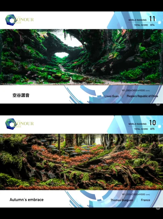 . 一年一度的IAPLC世界水草造景大赛落下帷幕。今年大赛涌现出一批极富创意的景观风格,尤其是前27名当中的不少作品令人拍案叫绝,不禁让人感觉自然水草造景隐有突破之势。值得一提的是,来自中国地区的造景师们实力依旧强劲。希望明年能有更多喜爱水草造景的朋友参与进来,在全球赛场上一决上下! .